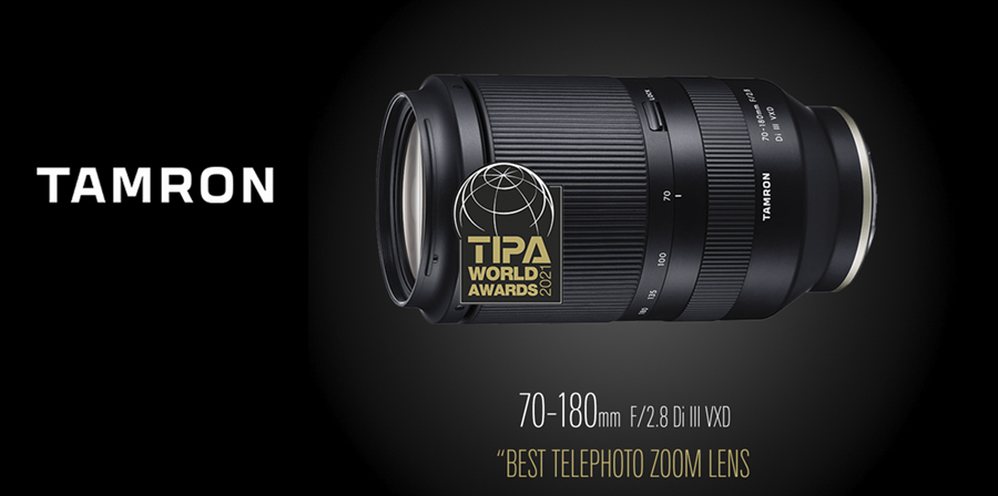 Tamron, anuncia que la Asociación de Prensa de Imagen Técnica (TIPA) les ha concedido su Premio TIPA 2021 al objetivo Tamron 70-180mm F/2.8 Di III VXD (Modelo A056) como "MEJOR OBJETIVO TELE ZOOM".
