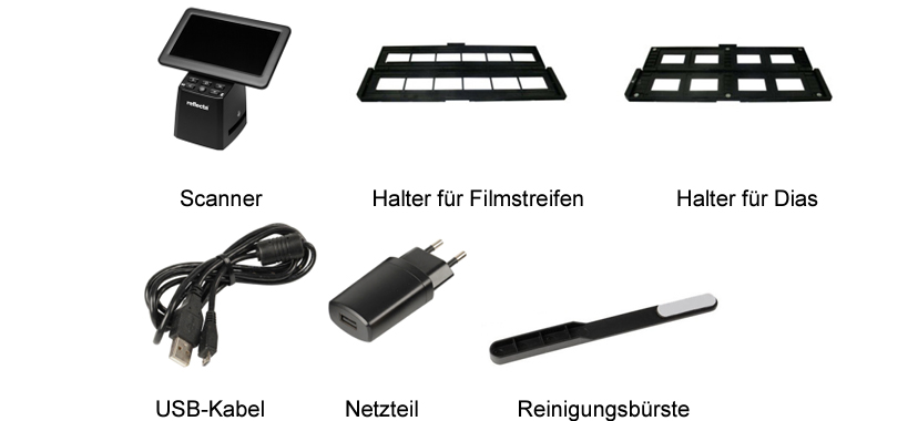 Los tipos de película que soporta son: Positivos (dias), negativos, blanco y negro y los soportes incluidos permiten escanear diapositivas enmarcadas con un grosor de hasta 3,2 mm, así como tiras de película de 35 mm con hasta seis imágenes. Los soportes también garantizan una planitud óptima y un manejo cuidadoso del valioso material de lámina. Opcionalmente están disponibles soportes para formatos de película 110 (Pocket) y 126 (Instamatic).